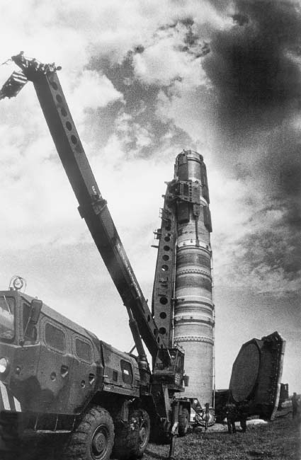 …Под свист степного ветра и гул мощных механизмов подъемного устройства командование 59-й ракетной дивизии прощалось со своим оружием. Огромная ракета, заключенная в специальный транспортно-пусковой контейнер, медленно, словно нехотя, за метром метр выходила из глубокой шахты. Ее сняли с боевого дежурства, значит, еще парочка американских штатов может спать спокойнее. Нет поводов для беспокойства и для жителей Карталинского района. Демонтаж ракеты производится с абсолютным соблюдением всех норм безопасности, действия военных четко контролируются со стороны гражданских структур. За выходом “Сатаны” из шахты наблюдали вице-губернатор Челябинской области Геннадий Подтесов и глава администрации Карталинского района Александр Сутункин.