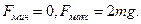 На вертикально стоящую невесомую пружину осторожно положили тело массы m и отпустили. Найти максимальное и минимальное ускорение тела и максимальную и минимальную силу действия пружины на опору в процессе возникших колебаний.