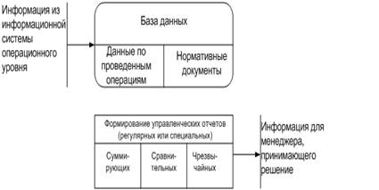 Входная информация поступает из систем операционного уровня. Выходная информация формируется в виде управленческих отчетов в удобном для принятия решения виде.