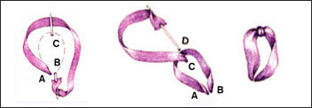 | Этим швом вышивают листья, бутоны и лепестки. Экспериментируйте с разным натяжением ленты и величиной петли. |