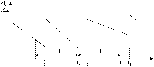 Z(t) – сплошная линия, реальный уровень запаса на складе;