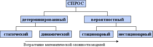 В свою очередь детерминированный спрос может быть статическим, когда интенсивность потребления не изменяется во времени, или динамическим, когда достоверный спрос с течением времени может изменяться.