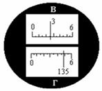 4. Отсчетные устройства с учетом современных требований совмещают, то есть отсчитывание по горизонтальному и вертикальному кругам производится по одному микроскопу, расположенному рядом со зрительной трубой. Поле зрения отсчетного приспособления теодолита Т- 30 показано на рис. 27. Отсчет по горизонтальному кругу –135°48 /, по вертикальному – 3° 26 /.