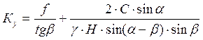 Критическое положение плоскости обрушения, при котором коэффициент устойчивости принимает минимальное значение Кmin, определяется последовательным изменением угла b или по формуле
