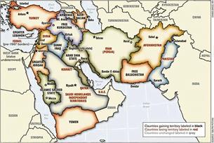 Все кто сегодня полагает, что агрессия нечестивых владык на ближний восток скоро завершится, элементарно заблуждаются, увы, но она еще только началась. Вот карта, передела границ стран мусульманского ближнего востока и центральной Азии, представленная в Интернете владыками Вавилона христианами. Этот план - очередное знамение от Сатаны подготавливающее общественное мнение «прогрессивного человечества» к неизбежным переменам от нечестивых владык.