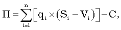 где qi - количество реализуемых изданий i-го вида; n - количество видов реализуемых изданий; Si - цена реализации i-го издания; Vi - переменные расходы в расчете на одно i-е издание; С - постоянные расходы предприятия.