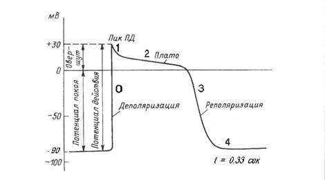 Рис. 3. Потенциал действия клетки рабочего миокарда желудочков