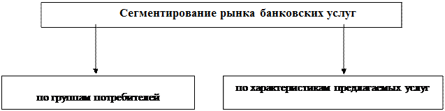 Сегментирование рынка связано с тем, что банковский рынок неоднороден и подразделяется на сегменты, в каждом из которых банк решает задачи по продаже своих продуктов. Сегментирование происходит по двум направлениям (рис.2.3).
