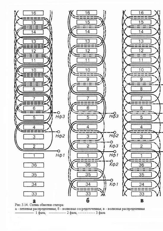 200, ПЭТД-180, ПЭТВМ, ПЭСВ-3 и др. Схемы обмотки статора