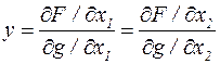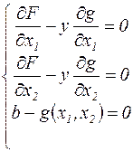 Функция Лагранжа L(x1, x2, y) = F(x1, x2) + y.(b – g(x1, x2)). В стационарной точке