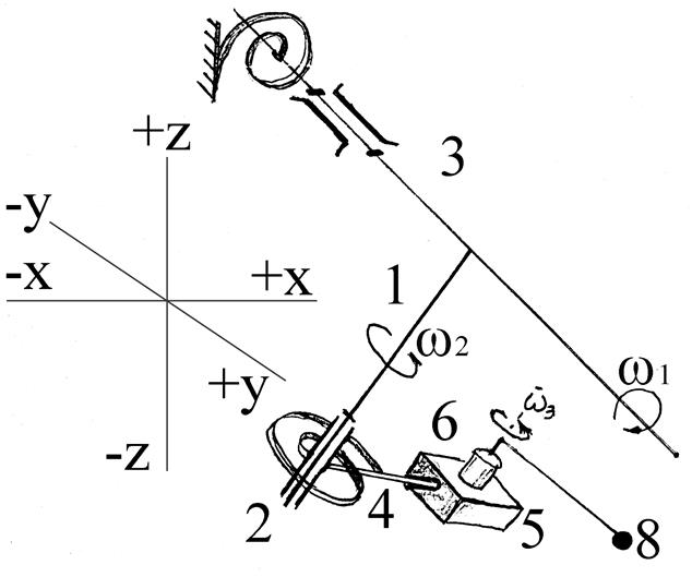 В статье, в журнале (и на сайте) и здесь на схеме Не показана ещё одна степень свободы в карданном подвесе, то есть БОЛЬШАЯ РАМКА (см. фото), горизонтальная, которая уже на полуосях крепится к станине. То что показано выше (рисунок схемы), всё это размещается в МАЛОЙ РАМКЕ, вертикальной, а она, в свою очередь, размещается в горизонтальной. Здесь есть особенность гироскопа, можно «большую рамку» размещать плюс в другой плоскости.