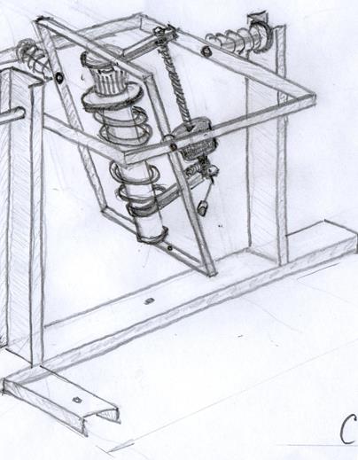 Кинематическая схема нашей установки ГМБ похожа на выше показанную схему Суорца (см. статью на сайте), но построена как система трёх балансирных маятников, как карданного подвеса основного маятника (4). Средний балансирный маятник — это подпружиненное плечо рычага «малая рамка» (1), закрепленной шарнирно в «большой рамке», которая, в свою очередь, колеблется на прочном основании, - стойки корпуса забетонированы в фундамент. Отбор мощности осуществляется с вала прецессии балансирного маятника «большая рамка».