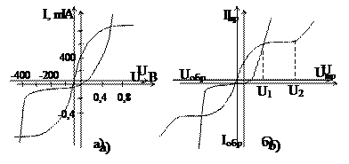 На рис. 7.2, б показана вольт-амперная характеристика полупроводникового стабилитрона – прибора, напряжение на котором в некотором диапазоне изменения тока остается практически неизменным.
