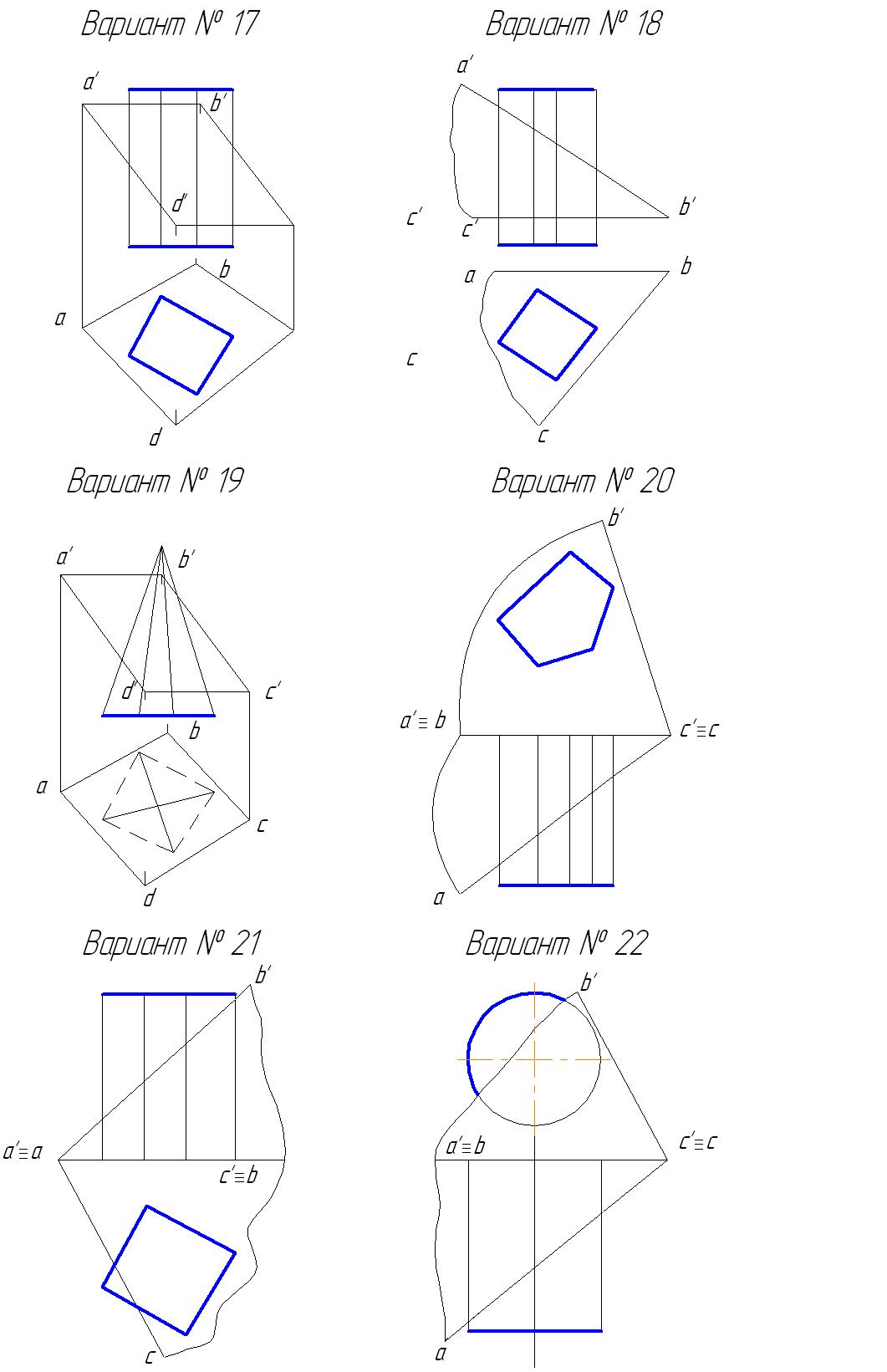 Проекции фигуры сечения и ее истинную величину рекомендуется обводить цветным карандашом. Истинная величина фигуры сечения должна быть заштрихована также цветным карандашом.