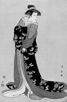Гейша с ики носила неброское кимоно, но ее осанка намекала на определенное кокетство, которое скрывалось под этой внешней скромностью. Она демонстрировала сексуальный шарм слегка приоткрытой грудью, обнаженным затылком шеи, и когда она шла, ее ноги показывались на фоне красной нижней юбки, и это было рискованное зрелище. Грация ее левой кисти, которой она запахивала платье, вносила дополнительную лепту в ее очарование, так же, как и ее широкая нижняя юбка, завязанная гораздо выше, чем у женщин других профессий. Для мужчины, который смотрел на нее, она персонифицировала область потенциального завоевания. Ее опыт и сила, ее предыдущие запретные отношения, все, что было видно по ее одежде, походке и манере поведения, только воспламеняло его желание.