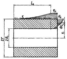 Рис. 22 - Схема распределения остаточных напряжений в цилиндрическом образце с центральным отверстием (Ж.А. Мрочек).