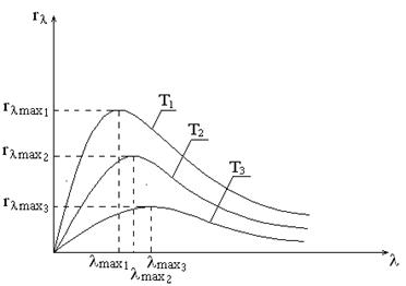 При повышении температуры длина волны, на которую приходится максимум излучения, смещается в коротковолновую область спектра.