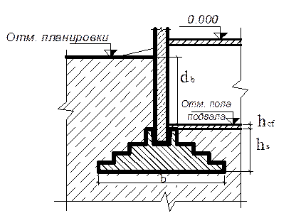db - глибина підвалу - відстань від рівня планування до підлоги підвалу, м (для споруд з підвалом глибиною понад 2 м приймають db = 2 м).