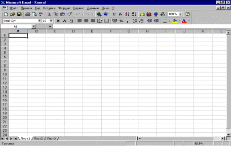 Після запуску програми Excel за замовчуваням відкривається документ під назвою «Книга 1». Кожен докумнет в цій програмі називається робочою книгою. Це файл, призначений для збереження й обробки даних. Такі файли мають розширення xls, а шаблони документів, створених в Excel – xlt.
