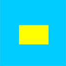 | 2.1.2.С помощью инструмента "Прямоугольник" построить фоновый квадрат (удерживать в процессе рисования кнопку-модификатор Ctrl). Применить однородную голубую заливку. Построение чашки начать с выполнения желтого прямоугольника. С помощью панели атрибутов выполнить позиционирование прямоугольников (координаты X задать одинаковыми). |