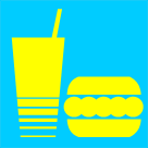 | 2.1.1.Система пиктографических знаков "Гостиница"выполняется в виде стилизованных изображений-символов желтого цвета (модель CMYK, Y=100%), расположенных на фоне квадрата голубого цвета (модель CMYK, С=100%, М=20%). |
