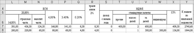 Чтобы получить сумму налога на доходы физических лиц, введите в ячейку Х7формулу
