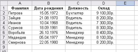 На рисунке 4.11 показан результат сортировки списка по должностям сотрудников. Для каждой должности фамилии сотрудников также упорядочены по алфавиту.
