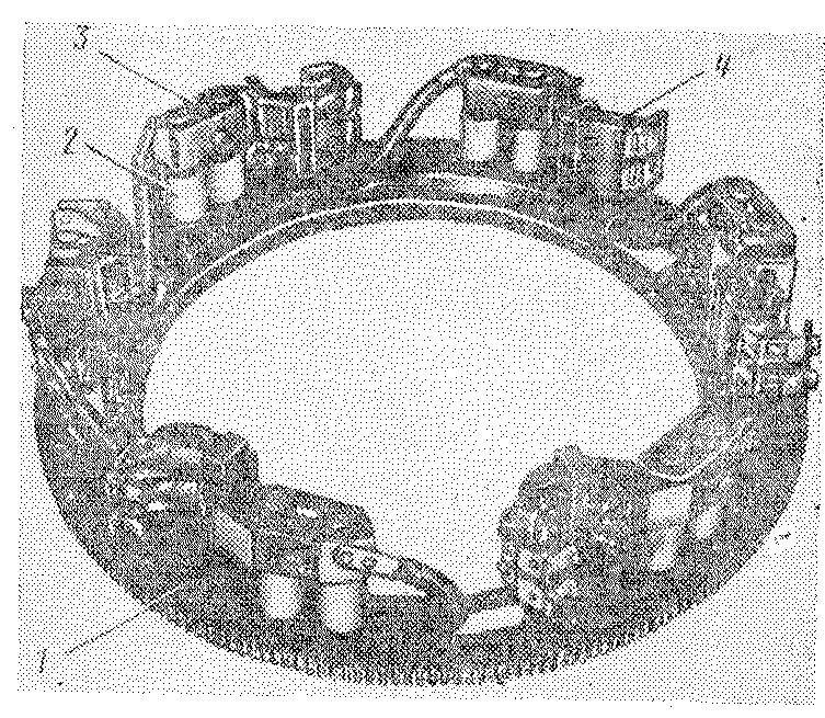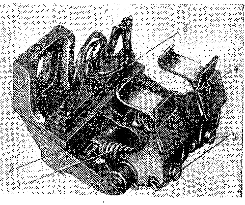 1 – траверса; 2- шестерня; 3 – кронштейны; 4 – щеткодержатели