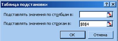 Вказати комірку робочого аркуша, куди слід підставляти вихідні дані. У нашому випадку вихідні дані – це значення відсоткових ставок, тому потрібно вказати комірку В4. Оскільки вихідні дані містяться в стовпці, ввести адресу комірки в поле Подставлять значения по строкам в.