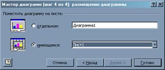 В четвертому діалозі майстра потрібно задати розміщення діаграми (наприклад, на окремому аркуші).