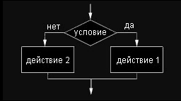 Если условие истинно, то будет выполнено только действие1, в противном случае будет выполнено только действие2.