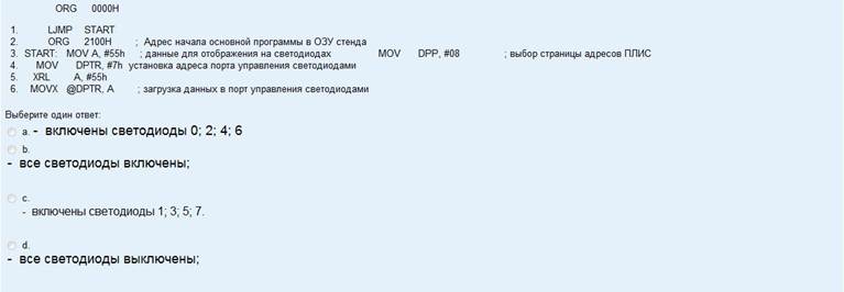41. Проанализируйте данный фрагмент программы и выберите правильные номера включенных/выключенных светодиодов