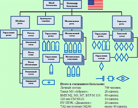 Организация смешанного батальона «тяжелой» бригады Сухопутных войск армии США