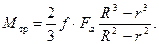 | Вид опоры | Особенности опоры | Момент трения опоры, Н·м |