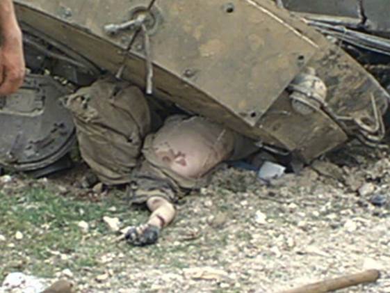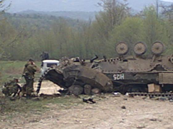 - 1 попадание в передний наклонный лист брони - по центру расположения коробок КДЗ (пустых).Вероятно с РПГ- 'струя', разворотив контейнеры КДЗ, через триплексы и погон люка механика- поразила МВ в голову, повредила ПУС. Вышел из строя стабилизатор вооружения 2Э28М2, отказал МЗ, пульт дублирования, 'дублер', ФВУ;