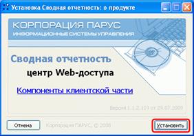 Для установки клиентской части необходимо перейти по тому пути, куда вы ее сохранили, и запустить файл ParusBalanceClient.exe. Вы увидите окно установки «Установка Сводная отчетность: о продукте»: