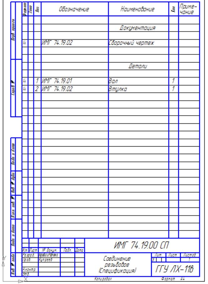 Рисунок 10.2 - Пример спецификации к сборочному чертежу