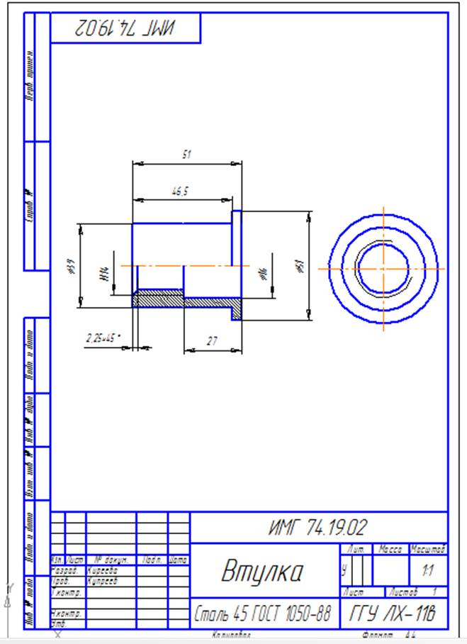 Рисунок 10.4 - Пример чертежа детали с внутренней резьбой