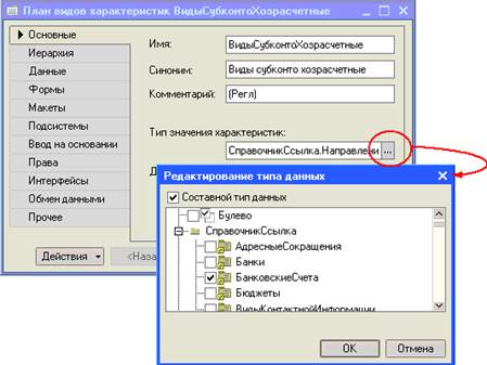 Порядок «привязки» объектов (справочников, документов и пр.) к конкретному виду субконто, представлен на рис. 1-14.