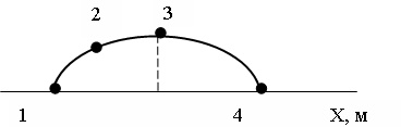 147. На рисунке изображена траектория движения тела, брошенного под углом к горизонту. В какой точке траектории кинетическая энергия тела имела минимальное значение. Сопротивлением воздуха пренебречь.