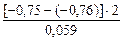 = -0,76В, n – равно заряду иона цинка Zn2+ (n=2).