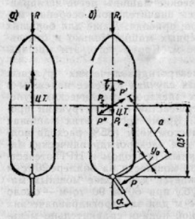 P2 – вызывает дрейф судна, т.е. движение в боковом направлении, которое частично уравновешивается сопротивлением воды.