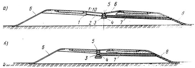5 – водоприемная решетка; 6 – одерновка; 7 – отвод воды из водостока; 8 – бетонный лоток на откосе