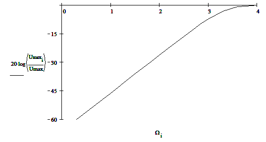 | Частота f, Гц | W = lg(f) | UR | UR/URmax | 20×lg(UR/URmax) |