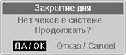 При отрицательном ответе на экране снова появится меню отчетов и день закрыт не будет, при положительном - день будет закрыт.