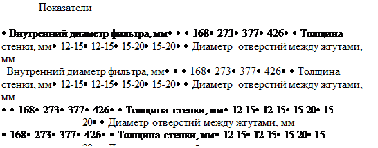 По данным разработчиков, суммарное сопротивление ζ2,характеризующее несовершенство скважин по характеру вскрытия водоносного пласта, в 12-14 раз ниже по сравнению с сетчатыми металлическими фильтрами. Такие фильтры значительно легче металлических, не поддаются электрохимическому зарастанию.