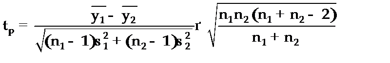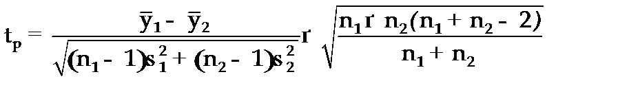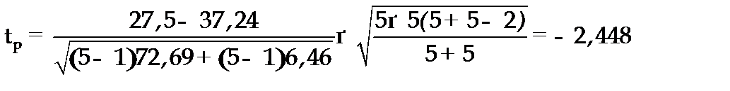 Гипотеза проверяется на основе t-критерия Стьюдента, расчетное значение которого определяется по формуле: