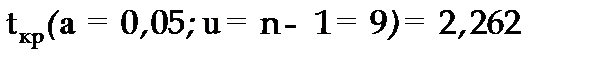 Расчетное значение (tp) критерия сравнивается с его критическим (табличным) значением (tкр) при уровне значимости a и числе степеней свободы n = n – 2.