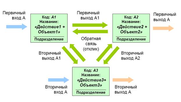 Иерархические связи и классификация из нее процессов на сети процессов не показывается для того, что бы не загромождать модель. В отличие от дерева бизнес-процессов сеть процесса дает более полное системное представление о деятельности организации, так как позволяет показать не только элементы организации, но и взаимодействия между ними. Помимо этого сеть процессов обеспечивает проверку разработанной модели деятельности организации на целостность, правильность выделения бизнес-процессов и описания их окружения. Если выход одного из бизнес-процессов, например документ, нигде далее не используется, то есть не является входом для другого бизнес-процесса или внешнего субъекта, то это означает следующее. Первое - описанный выход бизнес-процесса является либо ошибочным, либо лишним. В противном случае нужно найти б из нес-процесс для которого данный выход является входом и доработать схему окружения этого бизнес-процесса.