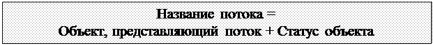 Например, если речь идет о продукции, которую отгрузили клиенту, то данный поток нужно сформулировать следующим образом - «Продукция, отгруженная» или «Продукция, отгруженная клиенту». В данном случае «Продукция» это объект, представляющий поток, а «отгруженная клиенту» - статус объекта.